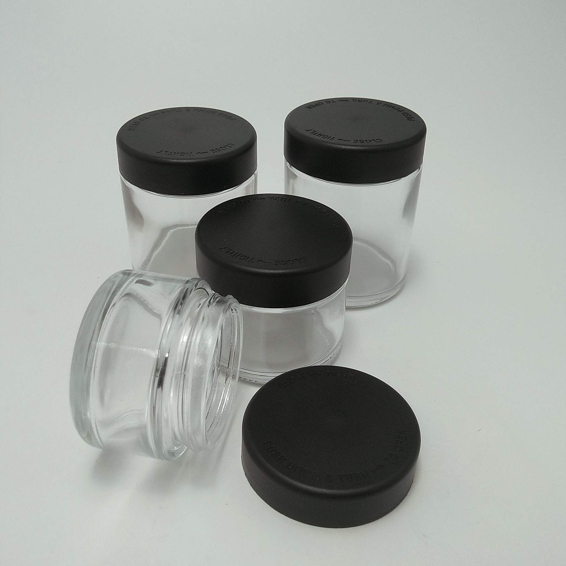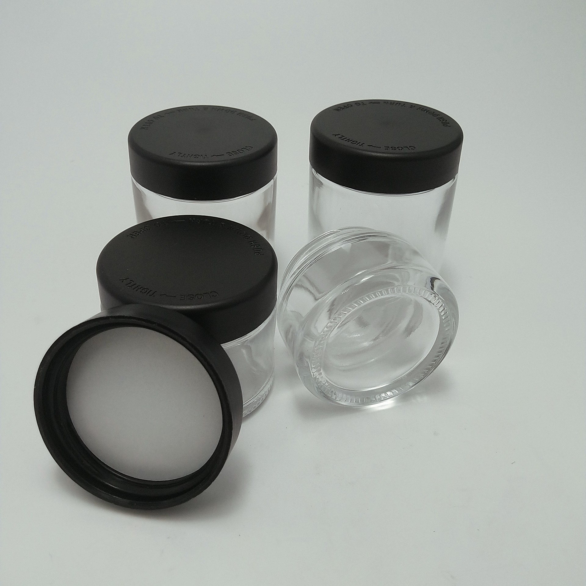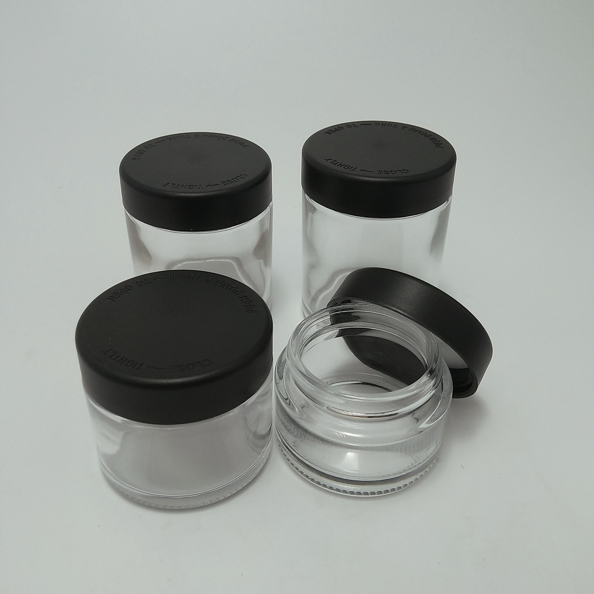 3oz รถบรรจุใสกันเด็ก สมุนไพร ดอกไม้ กระป๋องแก้ว CBD ดอกไม้ กระป๋อง