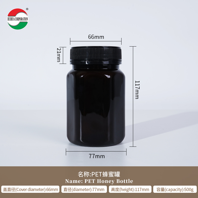 กระป๋องน้ําผึ้ง PET กระป๋องพลาสติกใสที่กําหนดเอง พร้อมฝาสกรูสําหรับบรรจุสินค้าสุขภาพที่มิตรต่อสิ่งแวดล้อมและอาหาร
